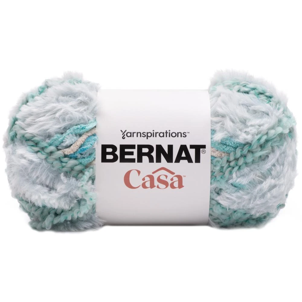Bernat Casa is comprised of 3 fibers (fur, velvet, and chenille) spliced together to create a lush multi-textured yarn. No tying ends in at the finish of a project or working from multiple balls. Easy, stress free knitting and crocheting.