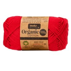 Makr Organic Cotton Crochet & Knitting Yarn, Red- 100g Cotton Yarn
